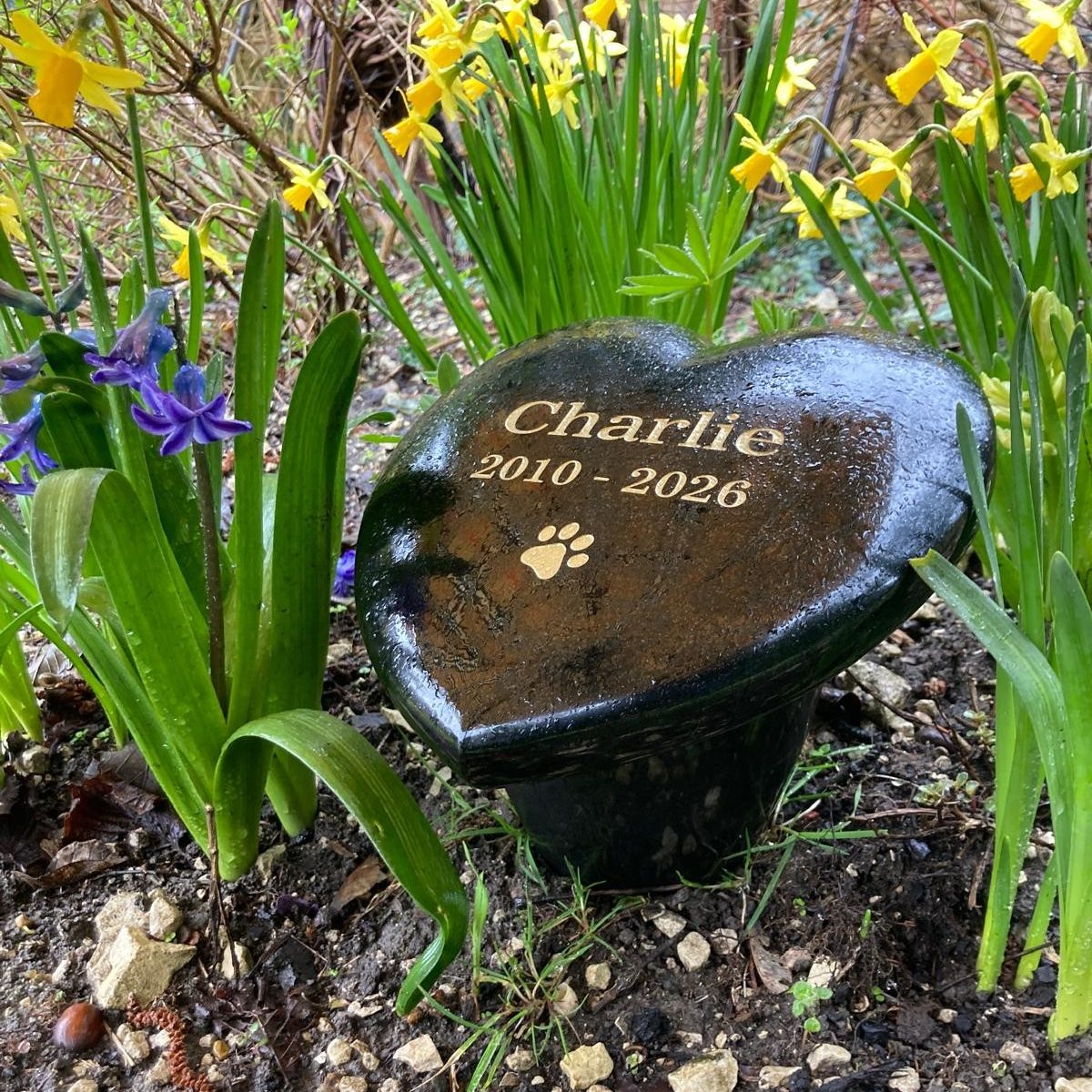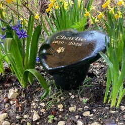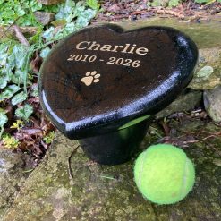 Crafted to honour a pets life with timeless dignity, our “Forever in Our Heart” granite heart-shaped headstone is a striking two-piece memorial, sculpted from the finest premium-grade black Italian granite. Each piece begins as a slab of natural stone formed over millions of years, carrying within it a quiet strength and enduring beauty that cannot be replicated.